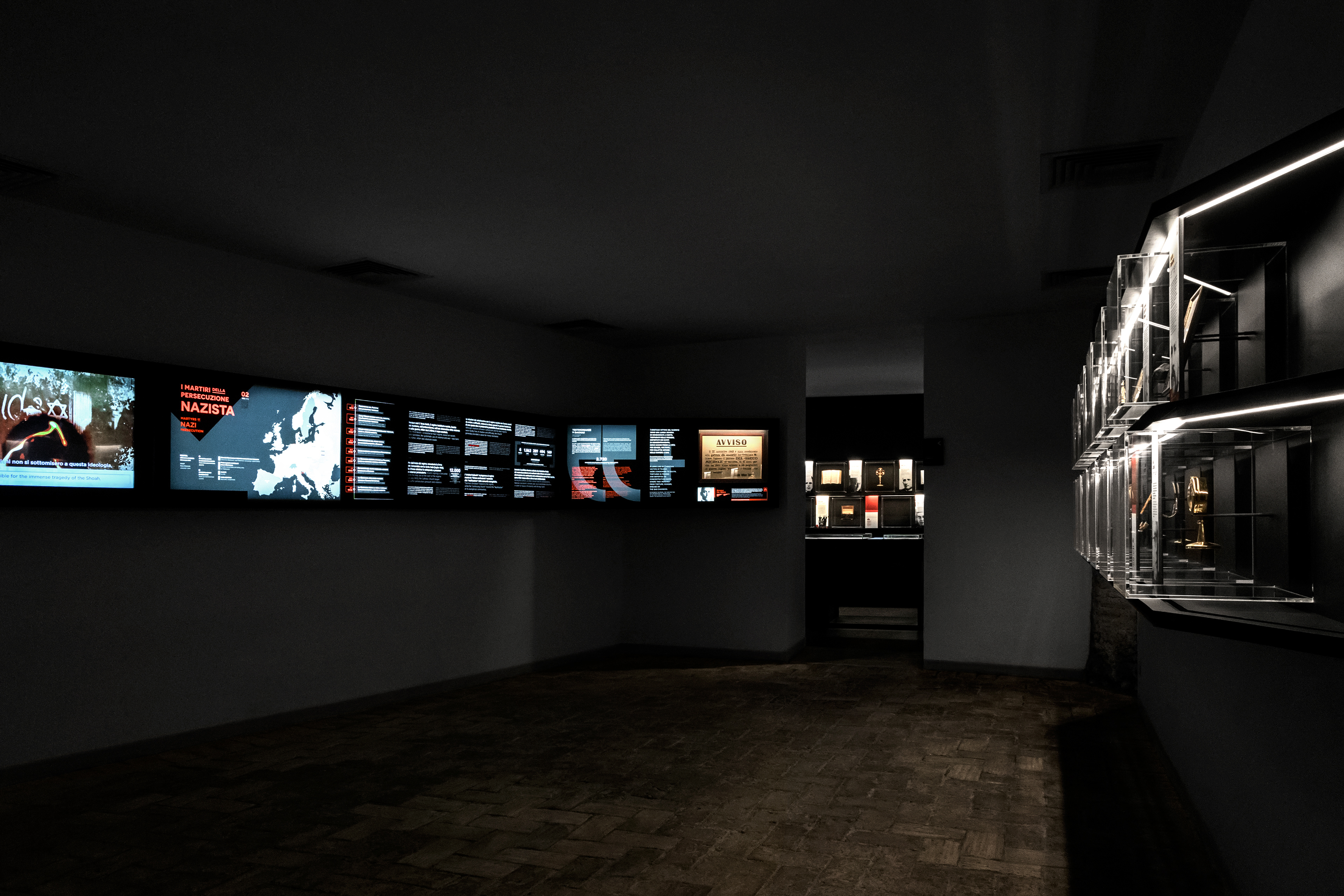 Identity & Exhibition graphic design 2018—23 Exhibition design -wise design [Stefano Balzanetti — Alessandro Di Mario, con Eleonora Giuliani] Graphic design obliq design [Marta Spadaro, con Francesca Cuppone] Operations management Alessio Moretti Advice Giovanni Longobardi, Paolo Vitti, Saverio Sturm, Alessandro Zuccari Climate control system design Gabriele Bellingeri Lighting design Fabertechnica Engineering Srl [Marco Frascarolo, con Sara Iacoponi] Web design & development Mondo a Colori Fullstack Texts Adriano Roccucci, Francesco De Palma, don Angelo Romano Realization Carmelo Privitera; Custompro Srls; Falegnameria Roncon Srl; ILM Sistemi di illuminazione; RE.I.MA Srl; Sefir Srl; Tagi 2000 Srl Video Doc Creativity [Paolo Mancinelli] English translation Scriptum, Roma Thanks to Open Fiber Main sponsors Archidiocese of Chicago, Città Metropolitana di Roma Capitale, Comunità di Sant'Egidio Institutions FEC Fondo Edicifici di Culto, Soprintendenza Speciale di Roma, Archeologia, Belle Arti e Paesaggio Link sanbartolomeo.org Photographs Cristina Vatielli